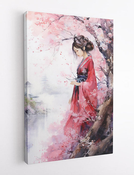 Cherry Blossom Geisha Watercolor Poster & Canvas Print – T553 – AiPrintLab