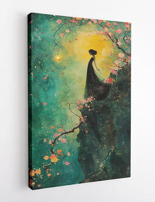 Mystic Blossom Cliffside Girl – Fantasy Canvas & Poster Wall Art – T794 – AiPrintLab