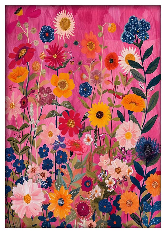 Pink Bloom Garden Wall Art – Colorful Floral Canvas & Poster Print – T792 – AiPrintLab