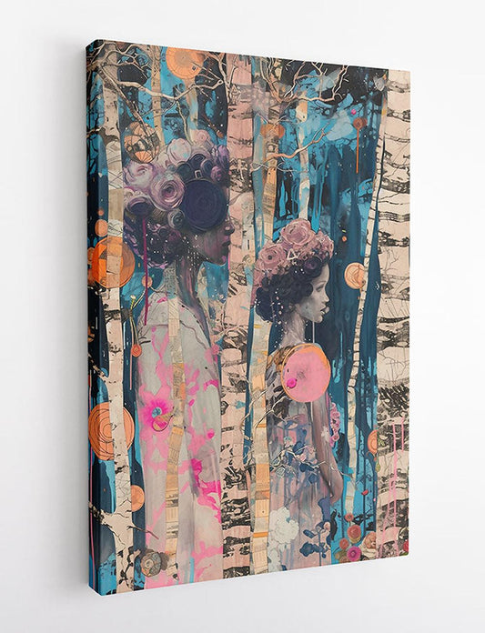 Whispers in the Birch – Surreal Forest Figures Abstract Canvas Art – T880 – AiPrintLab