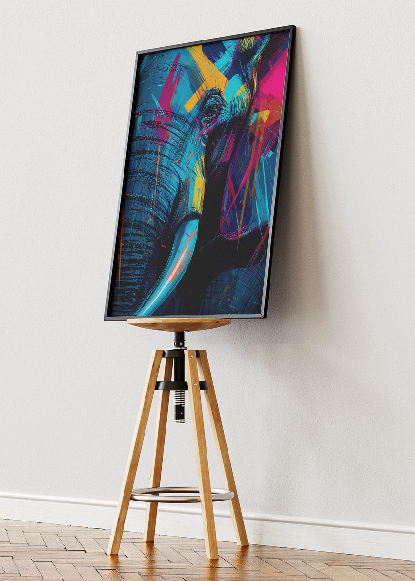 Abstract Neon Elephant Canvas Print & Poster – Modern Wildlife Wall Art