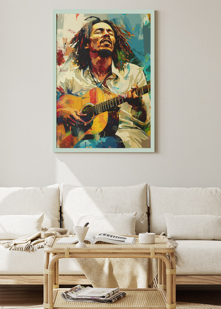 Bob Marley Acoustic Guitar Wall Art Poster & Canvas Print – Reggae Legend Colourful Portrait