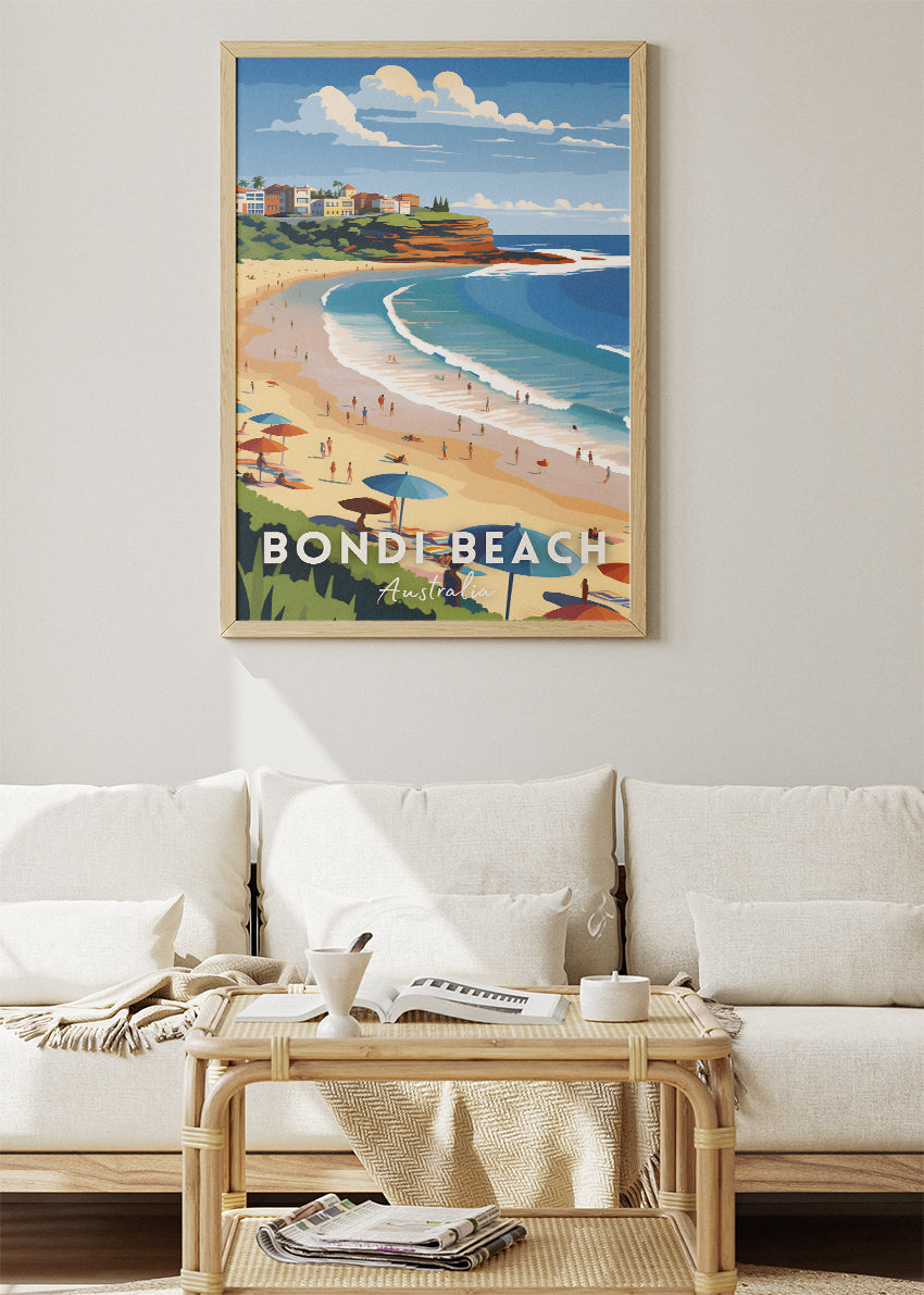 Bondi Beach Australia Travel Poster & Canvas Wall Art – Coastal Sydney Beach Print