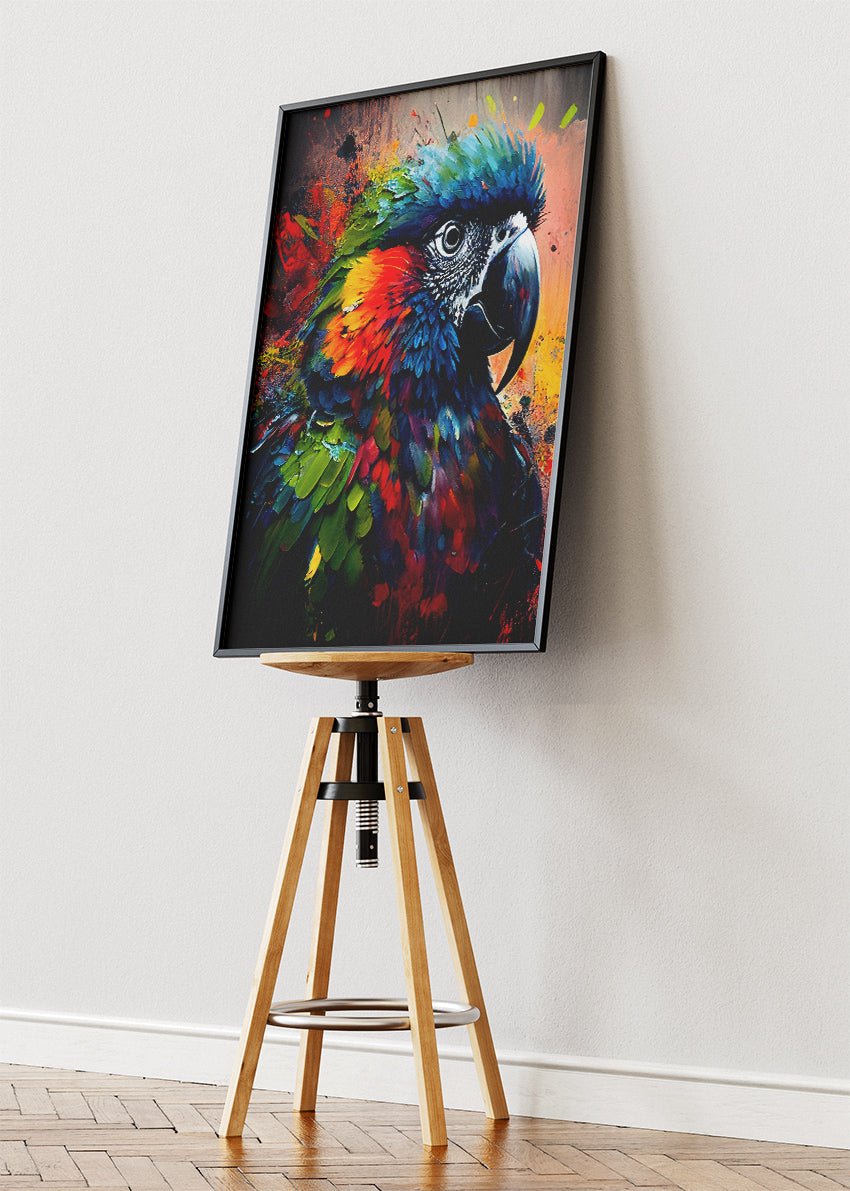 A striking and vibrant parrot artwork bursting with rich colours, dynamic splashes, and detailed feather texture. This bold splash-art style design brings instant energy and character to any room — perfect for living spaces, studios, offices, or modern décor lovers. Available as a premium poster or high-quality canvas print.