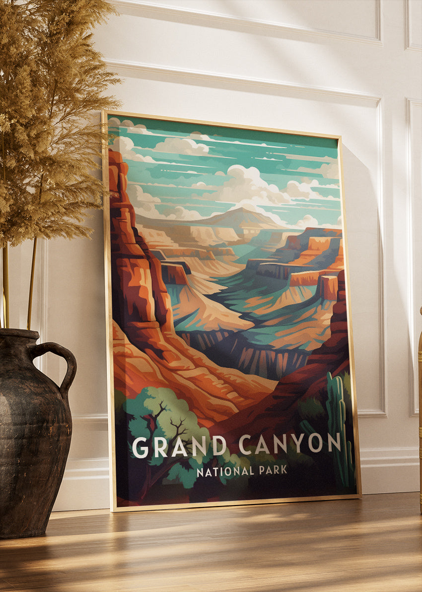 Grand Canyon National Park Poster & Canvas Print – Desert Canyon Landscape Illustration Wall Art