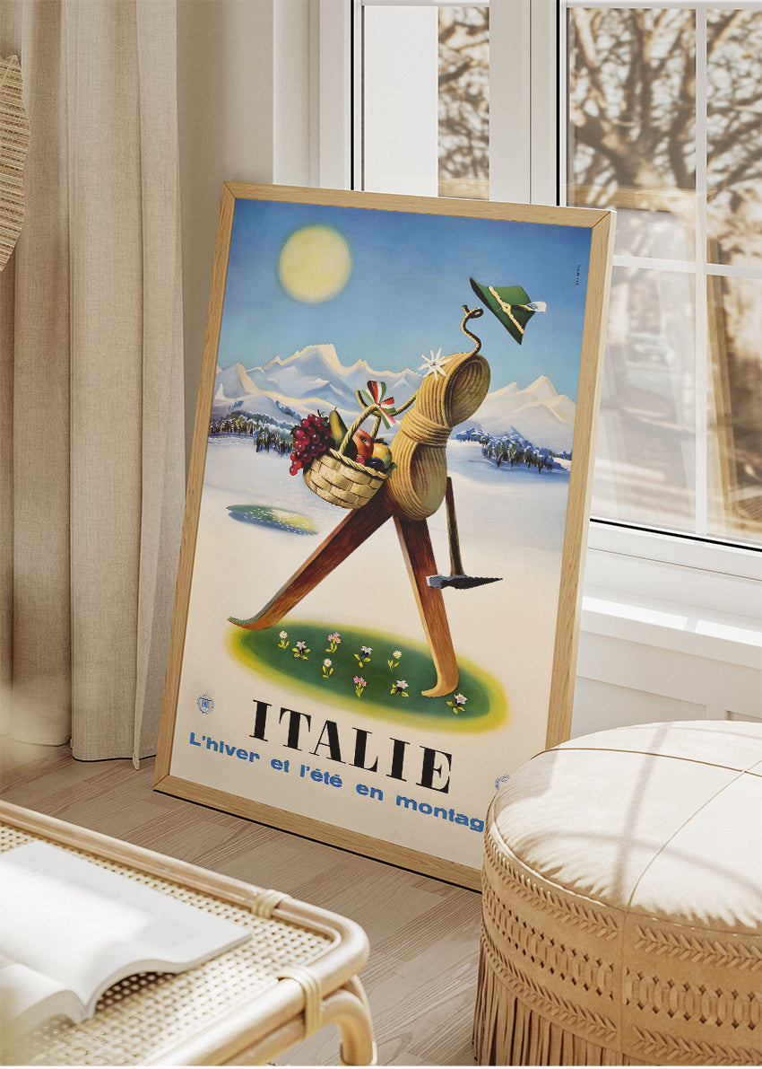 Italie Poster & Canvas Print – Vintage Mountain Travel Art (Winter & Summer Design)