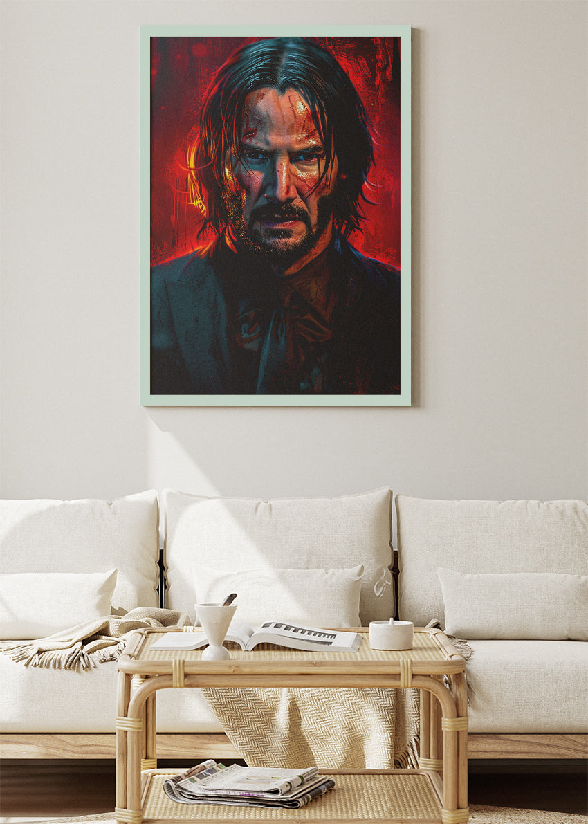 John Wick Inspired Wall Art – Dark Action Movie Portrait Poster & Canvas Print