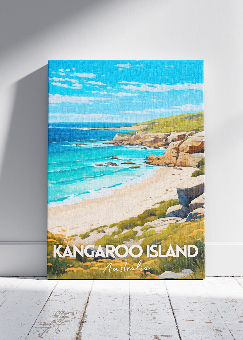 Kangaroo Island Australia Travel Poster & Canvas Wall Art – Coastal Beach Print