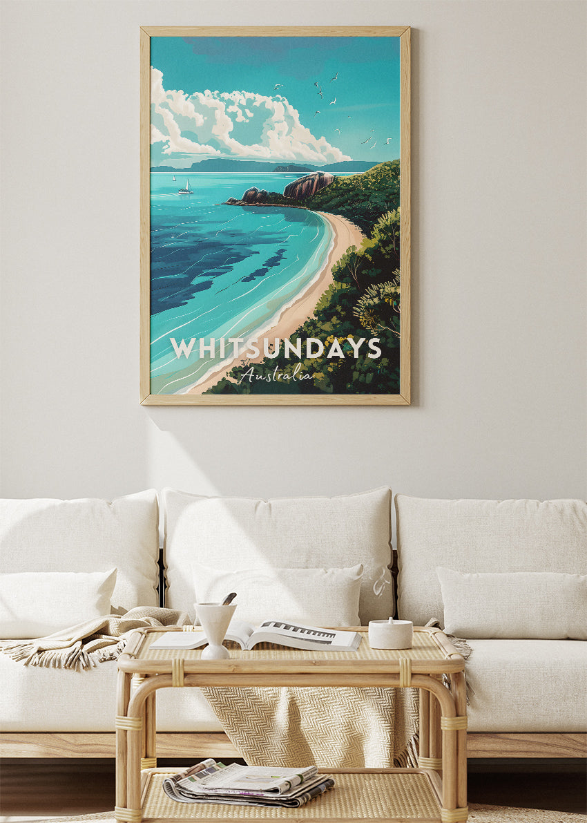 Whitsundays Australia Travel Poster & Canvas Wall Art – Tropical Coastal Beach Print